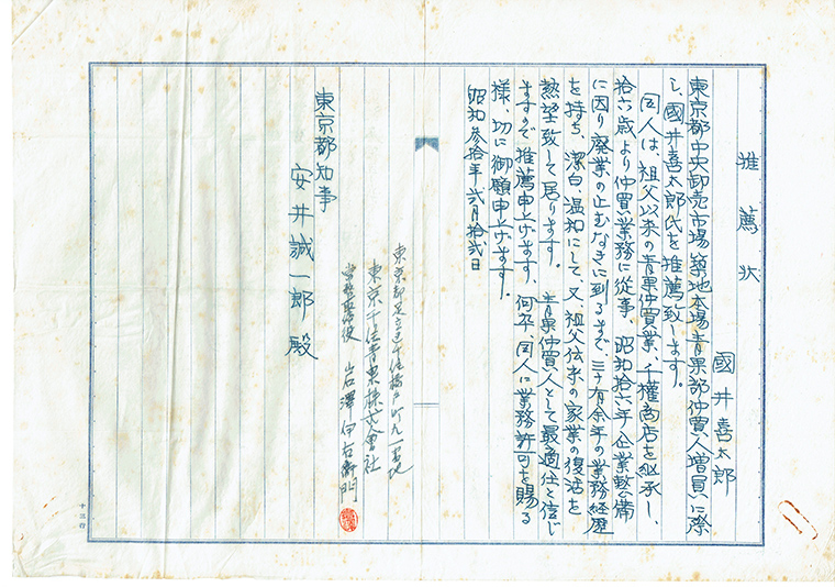 ※東京千住青果株式会社様より東京都に提出頂いた推薦状