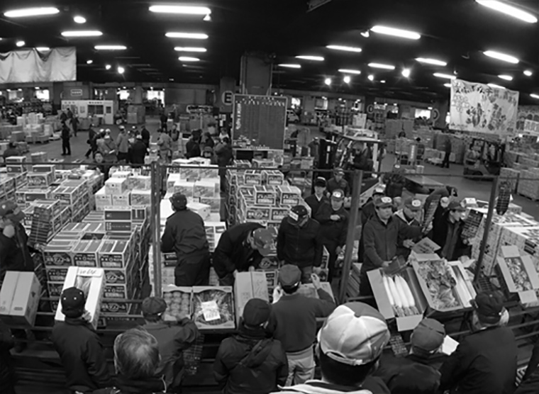戦前まで「庶民の台所」として大きな賑わいを見せていた足立のやっちゃ場、千住市場。神田、駒込と並び幕府の御用市場として育成され、400年以上に渡って食の供給を担ってきました。江戸の末期、この千住に120名ほどいたと言われる投師の一人、國井権平。権平は、近郊農家が持ちこむ三つ葉や穂じそなどを千住市場で仕入れ、牛に引かせた大八車で当時繁栄を誇っていた神田市場まで運搬し、荷を捌いていたそうです。時は幕末、明治維新の真只中に「千住の権平」は、現・株式会社千権の前身である國井権平商店を創業。仲卸業としての礎を神田の地に築きました。